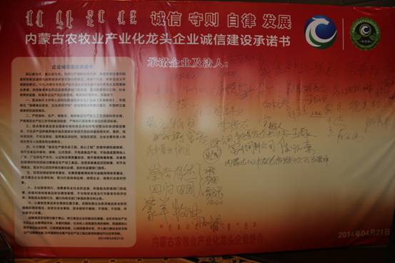 《內(nèi)蒙古農(nóng)牧業(yè)產(chǎn)業(yè)化龍頭企業(yè)誠信建設承諾書》簽名墻