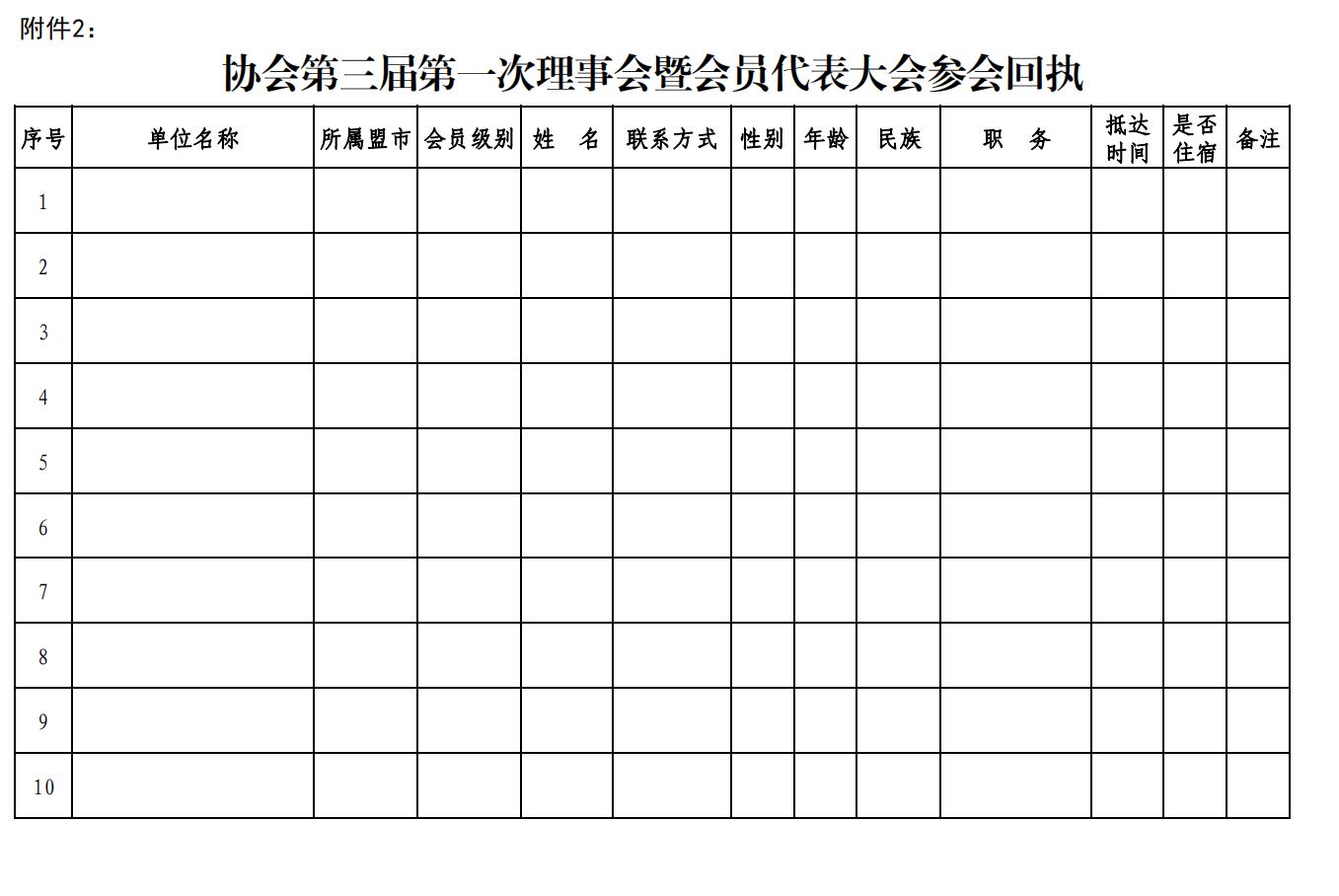 附件2:協(xié)會第三屆第一次理事會暨會員代表大會參會回執(zhí)