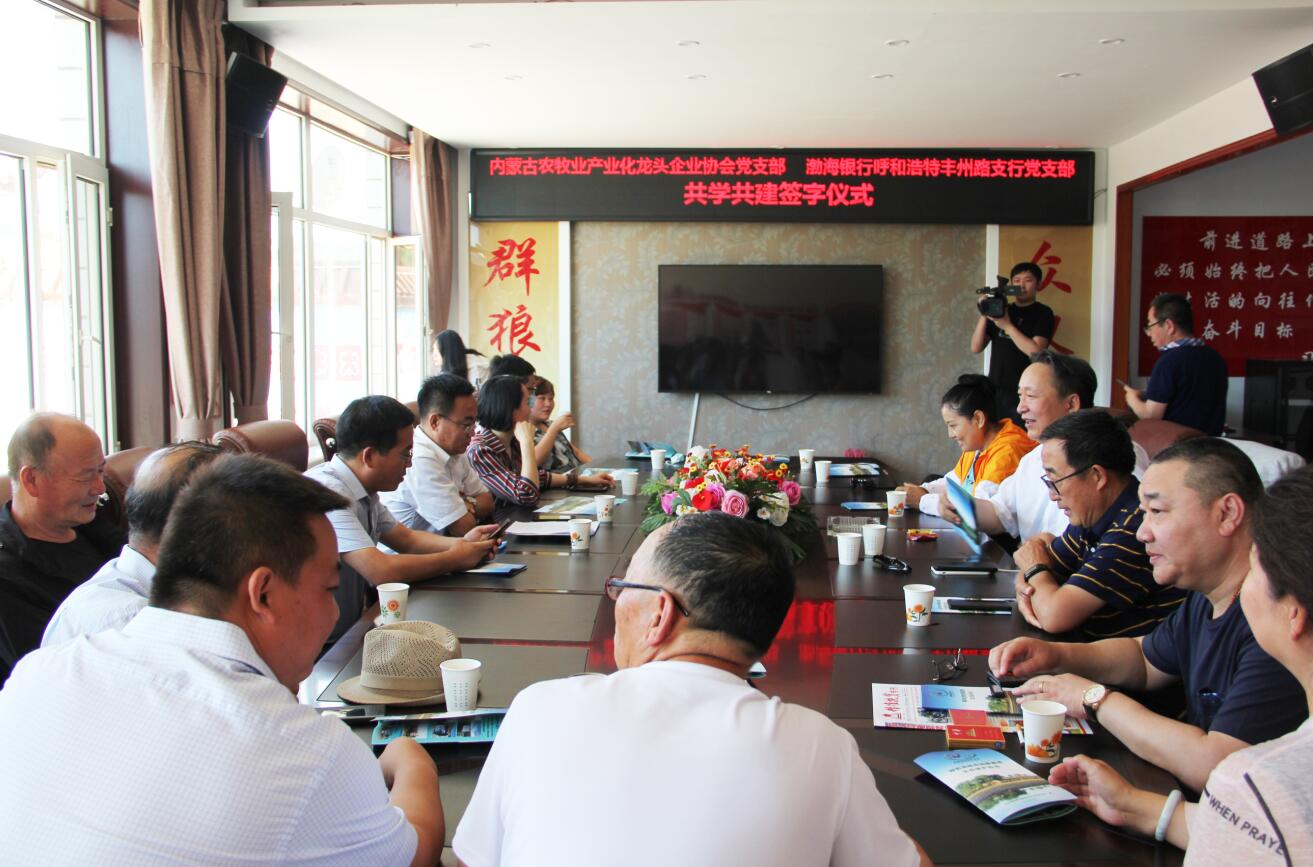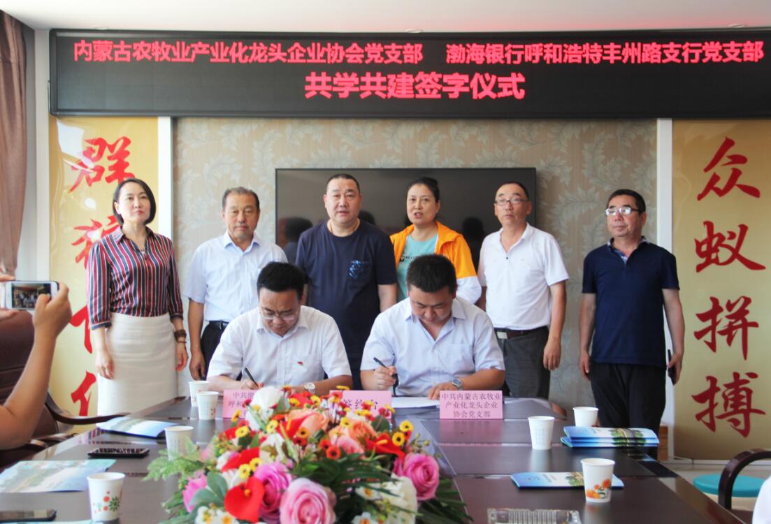 活動過程中,為創(chuàng)造性地推進黨組織“共學共建”結(jié)對工作,圍繞新時代黨的建設總要求,內(nèi)蒙古農(nóng)牧業(yè)產(chǎn)業(yè)化龍頭企業(yè)協(xié)會黨支部和渤海銀行呼和浩特豐州路支行黨支部簽訂了《共學共建結(jié)對協(xié)議》。通過結(jié)對共建,在弘揚社會正能量、加強愛國主義教育等方面樹立新典型,力爭在構(gòu)建銀企合作關(guān)系等方面取得新突破。