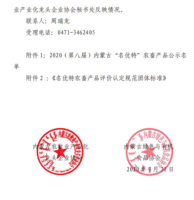 標(biāo)題:2020第八屆內(nèi)蒙古“名優(yōu)特”農(nóng)畜產(chǎn)品認(rèn)定公示名單