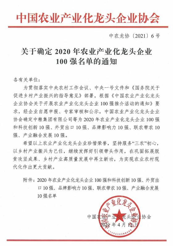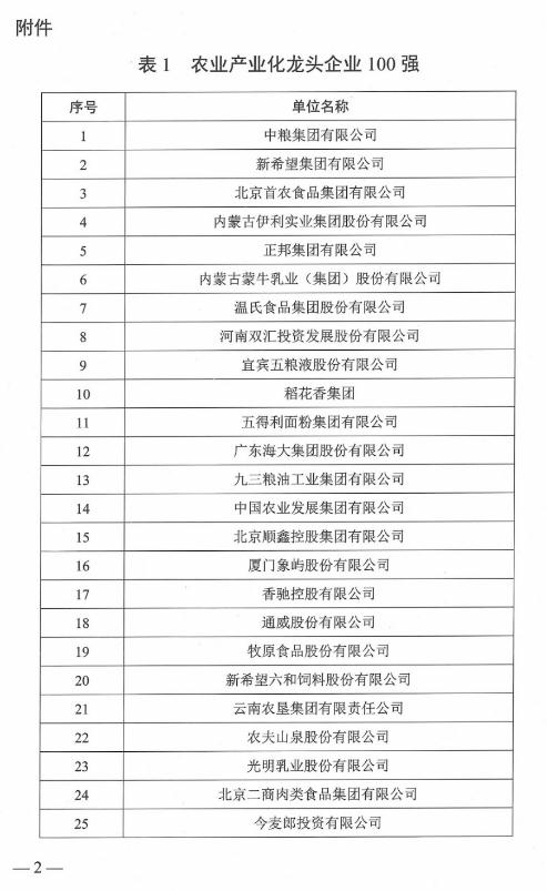2020年農(nóng)業(yè)產(chǎn)業(yè)化龍頭企業(yè)百強名單發(fā)布