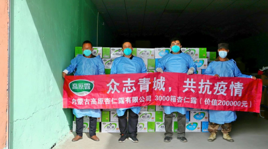 20、常務理事單位-內(nèi)蒙古高原杏仁露有限公司:近日,內(nèi)蒙古高原杏仁露有限公司向玉泉區(qū)捐贈了價值12萬余元的高原杏仁露,本次捐贈表達了對所有抗疫工作人員的熱切關(guān)懷和暖暖情意,感謝所有逆行者“疫”無反顧的擔當與堅守。