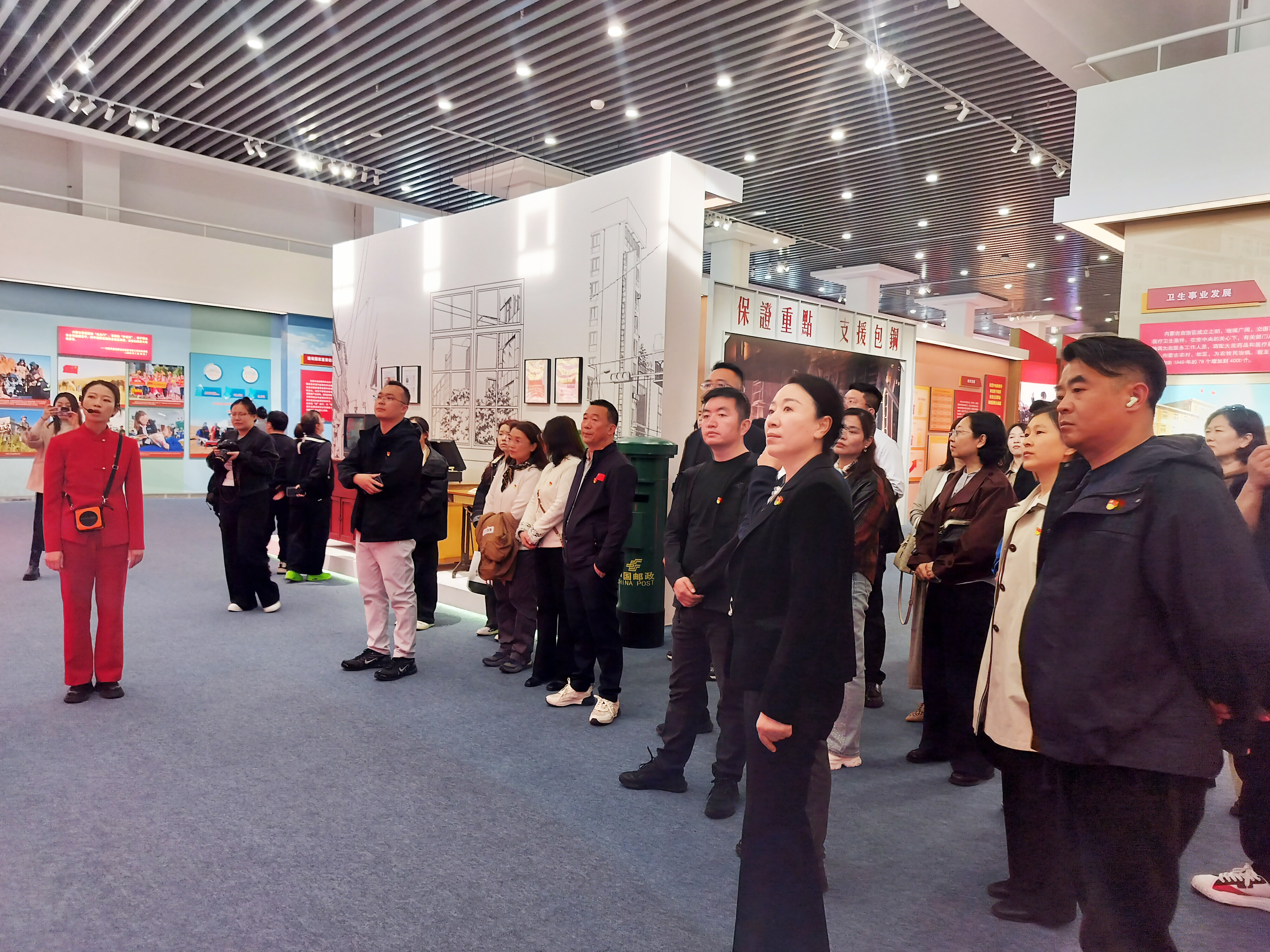 黨員們參觀了內(nèi)蒙古展覽館內(nèi)“牢記囑托 感恩奮進(jìn)——辦好兩件大事 奮力書(shū)寫(xiě)中國(guó)式現(xiàn)代化內(nèi)蒙古新篇章”主題展。該主題展以鑄牢中華民族共同體意識(shí)為主線,通過(guò)6個(gè)部分集中展示了全區(qū)各族干部群眾緊跟習(xí)近平總書(shū)記奮進(jìn)新征程、建功新時(shí)代的生動(dòng)實(shí)踐。黨員們認(rèn)真聽(tīng)取講解,通過(guò)一幅幅充滿活力的圖片展示,深入了解內(nèi)蒙古地區(qū)新時(shí)代的奮進(jìn)歷程,深刻感悟到黨領(lǐng)導(dǎo)下的各族人民團(tuán)結(jié)奮斗的光輝歷程與偉大成就,進(jìn)一步增強(qiáng)了維護(hù)民族團(tuán)結(jié)、守望相助的思想自覺(jué)和行動(dòng)自覺(jué)。
