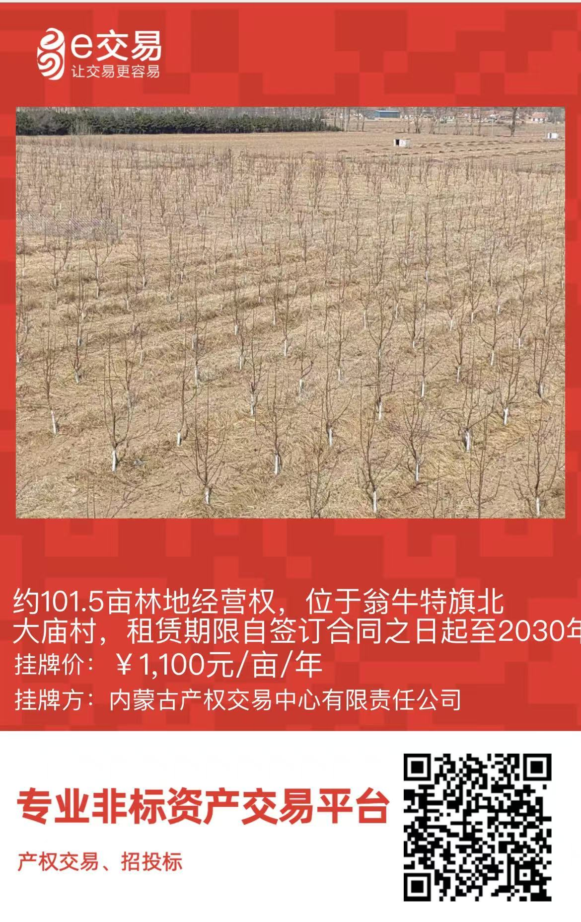 101.5畝采摘園經(jīng)營權(quán),位于翁牛特旗北大廟村,租賃期限自簽訂合同之日起至2030年12月1日(翁牛特旗全寧街道北大廟村股份經(jīng)濟合作社)