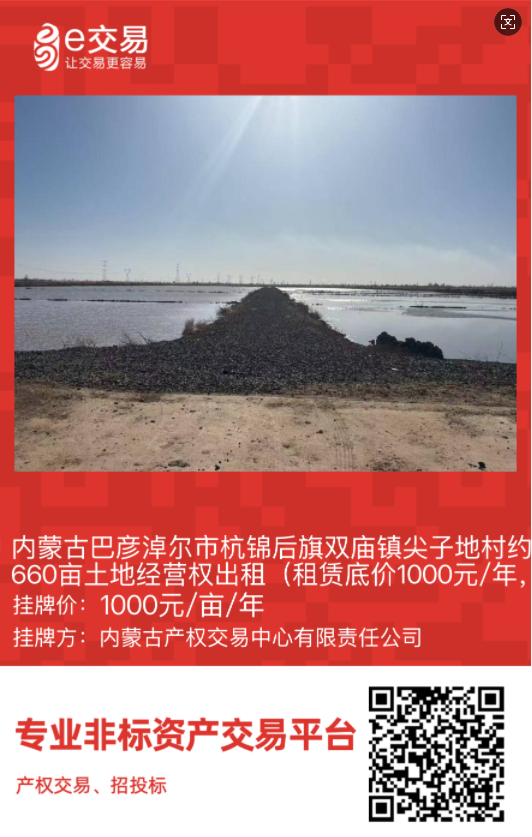 巴彥淖爾市首宗規(guī)范化農(nóng)村產(chǎn)權(quán)交易掛牌!杭錦后旗雙廟鎮(zhèn)尖子地村660畝高標準農(nóng)田經(jīng)營權(quán)公開出租