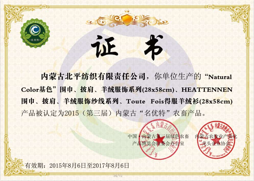 內(nèi)蒙古北平紡織有限責(zé)任公司是一家集設(shè)計(jì)、生產(chǎn)和銷售為一體的國(guó)際化羊絨制品集團(tuán)公司。公司總部及生產(chǎn)基地位于內(nèi)蒙古呼和浩特市金山開發(fā)區(qū)。公司下轄有:集企劃、設(shè)計(jì)、營(yíng)銷于一體的全資海外子公司和連通國(guó)內(nèi)外流通貿(mào)易樞紐的上海北田共貿(mào)易公司。 公司成立于2005年,總占地面積60000多平方米,建筑面積30...
