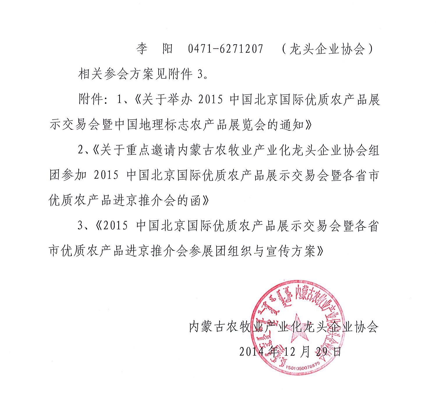 關(guān)于組織會員企業(yè)參加2015中國北京國際優(yōu)質(zhì)農(nóng)產(chǎn)品展示交易會暨各省市優(yōu)質(zhì)農(nóng)產(chǎn)品進(jìn)京推介會的通知