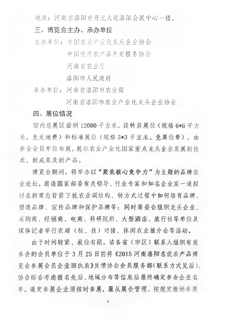 關(guān)于舉辦2015年中國農(nóng)業(yè)產(chǎn)業(yè)化龍頭企業(yè)協(xié)會(huì)名優(yōu)產(chǎn)品博覽會(huì)的通知