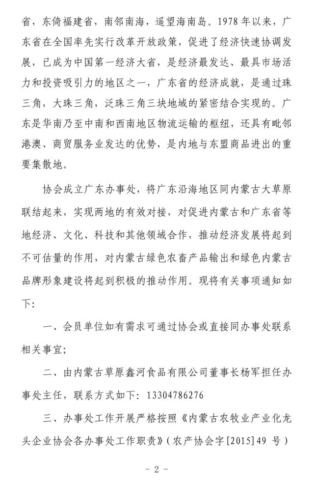 關(guān)于成立內(nèi)蒙古農(nóng)牧業(yè)產(chǎn)業(yè)化龍頭企業(yè)協(xié)會廣東辦事處的通知