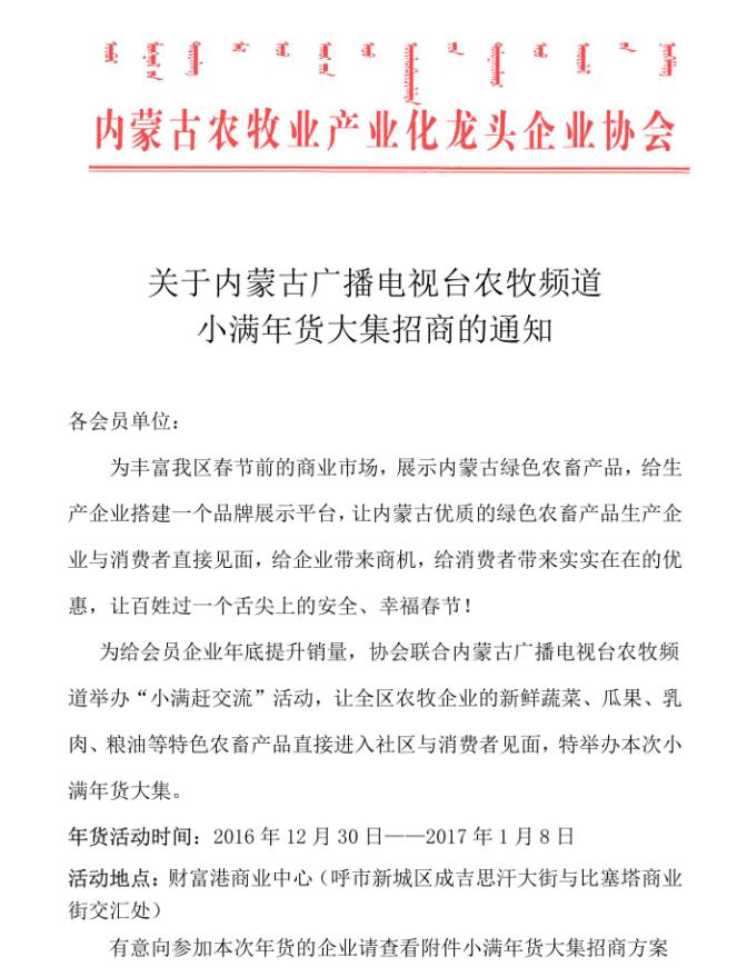 關于內(nèi)蒙古廣播電視臺農(nóng)牧頻道小滿年貨大集招商的通知