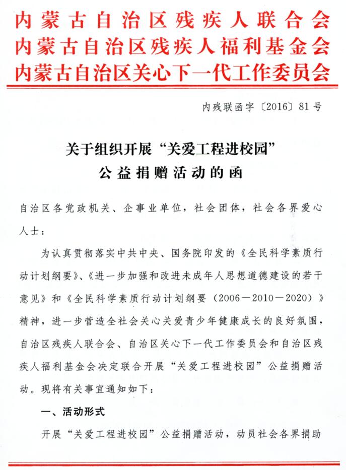 關(guān)于組織開展“關(guān)于工程進(jìn)校園”公益捐贈(zèng)活動(dòng)的通知