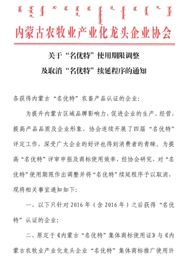 關于“名優(yōu)特”使用期限調(diào)整及取消“名優(yōu)特”續(xù)延程序的通知