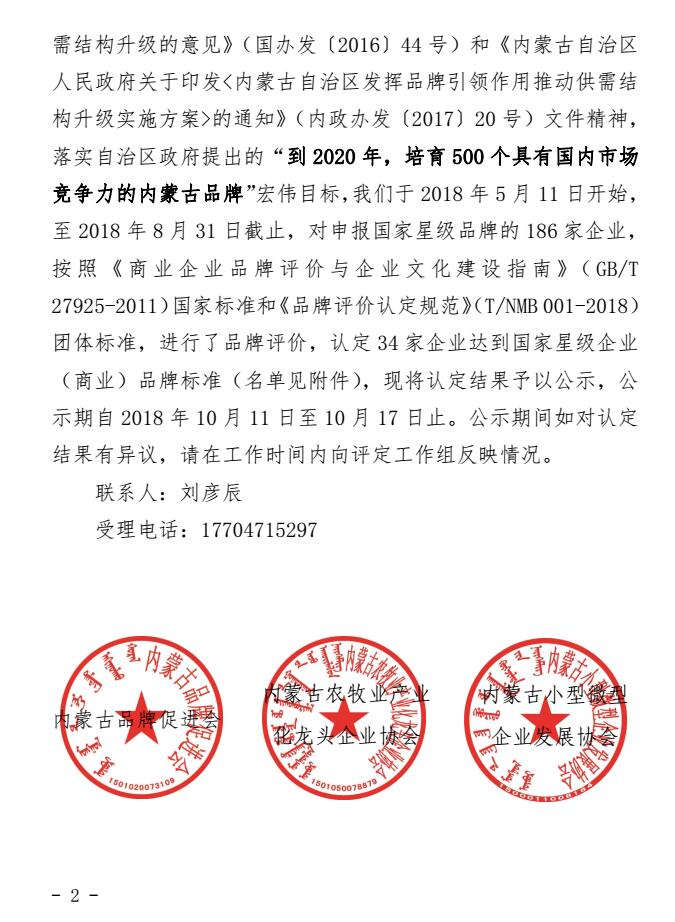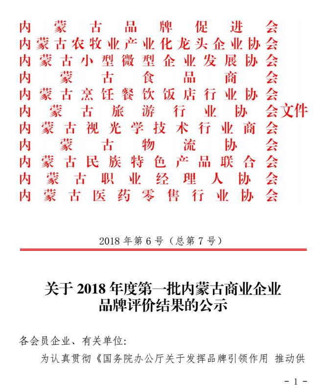 關(guān)于2018年度第一批內(nèi)蒙古商業(yè)企業(yè)品牌評(píng)價(jià)結(jié)果的公示