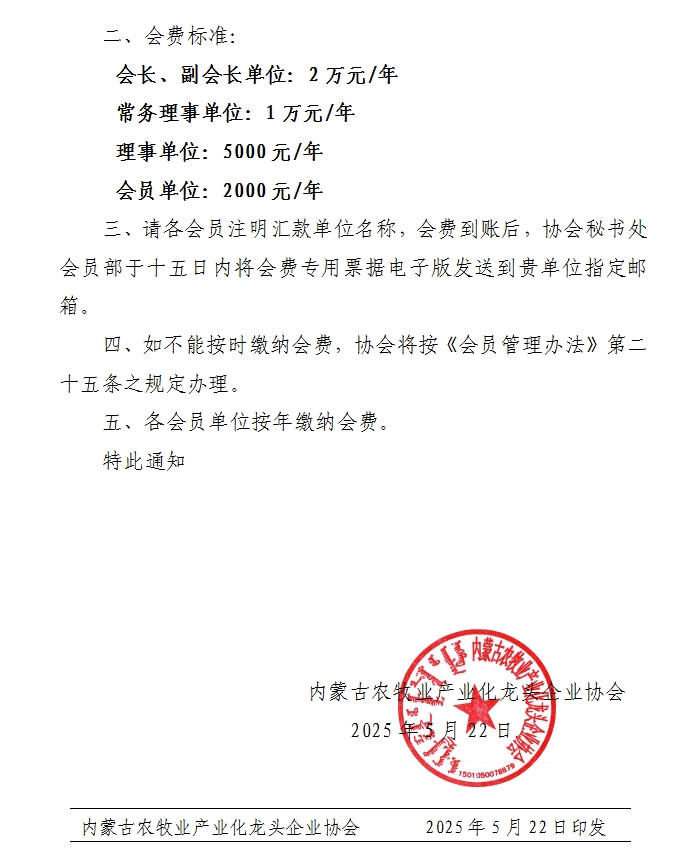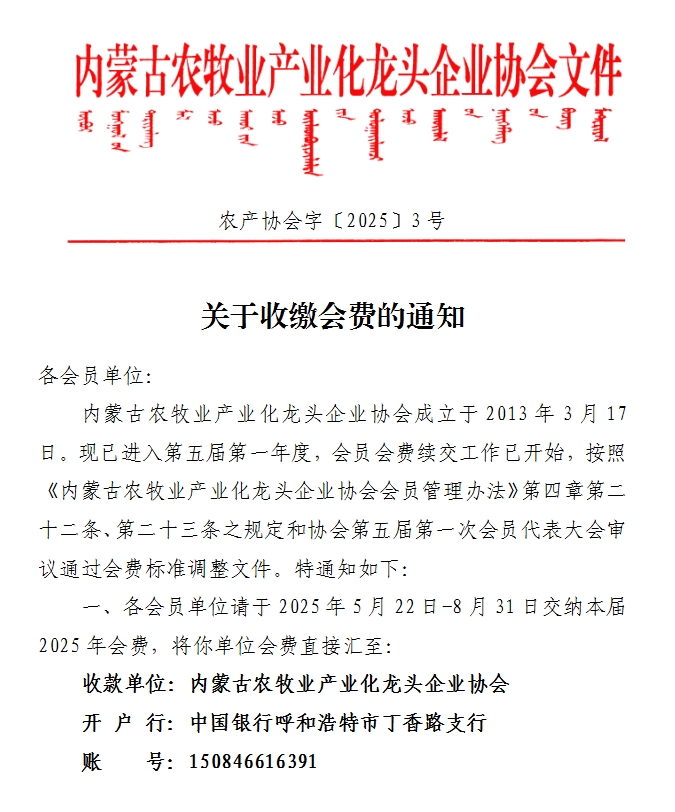 關(guān)于收繳會費的通知